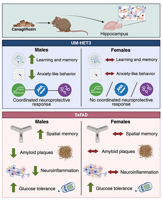 Jayarathne, H., Manchanayake, D. H., Chimienti, N., Kadri, O., Gurdziel, K., Kim, S., … Sadagurski, M. (2025). Canagliflozin reprograms the aging hippocampus in genetically diverse UM-HET3 mice and attenuates Alzheimer’s-like pathology. Aging Cell. https://doi.org/https://onlinelibrary.wiley.com/doi/10.1111/acel.70255